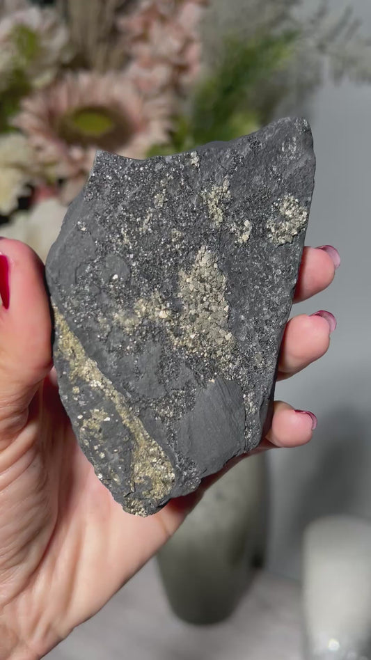 Pyrite on Shungite (3", 77mm)