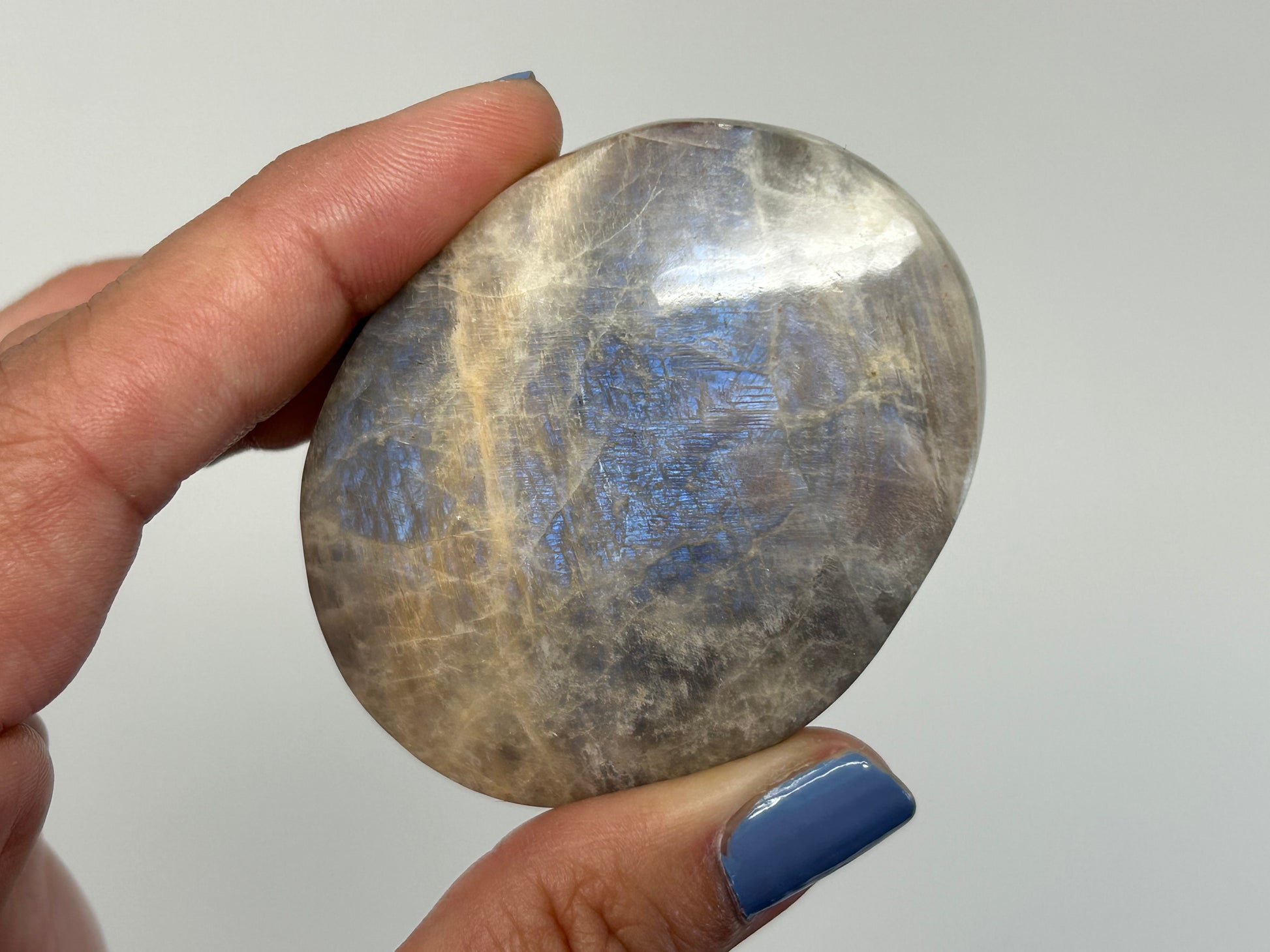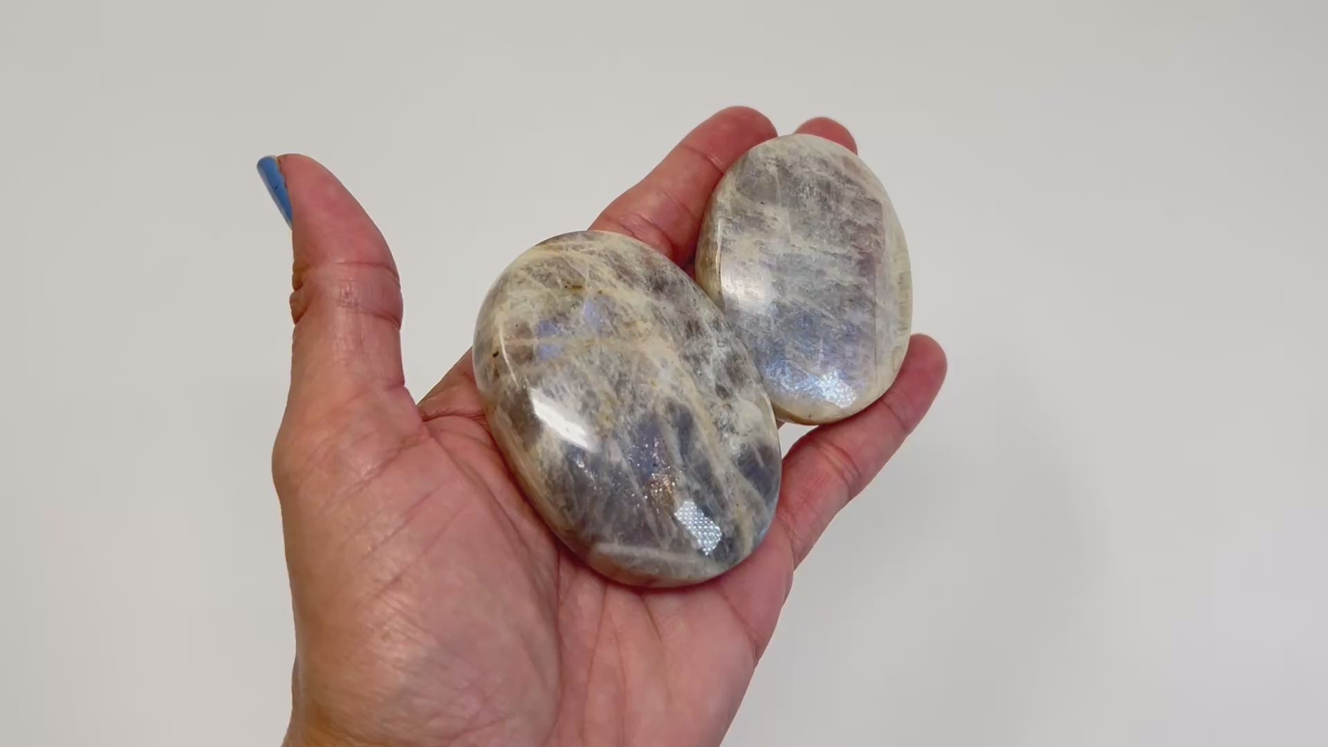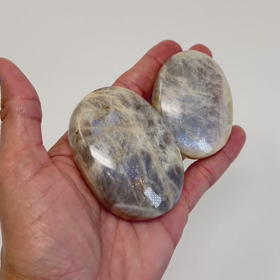 One Blue Moonstone with Sunstone palm stone