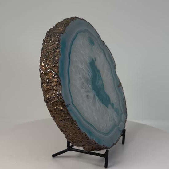 Over time, Blue Agate can help support emotional maturity, self-acceptance, and thoughtful decision-making. Displayed on its iron stand, this plate acts as an anchoring presence in shared spaces, encouraging harmony, focus, and a sense of quiet security. This stone supports creating calm, balanced environments where clarity, steadiness, and emotional ease can naturally unfold.