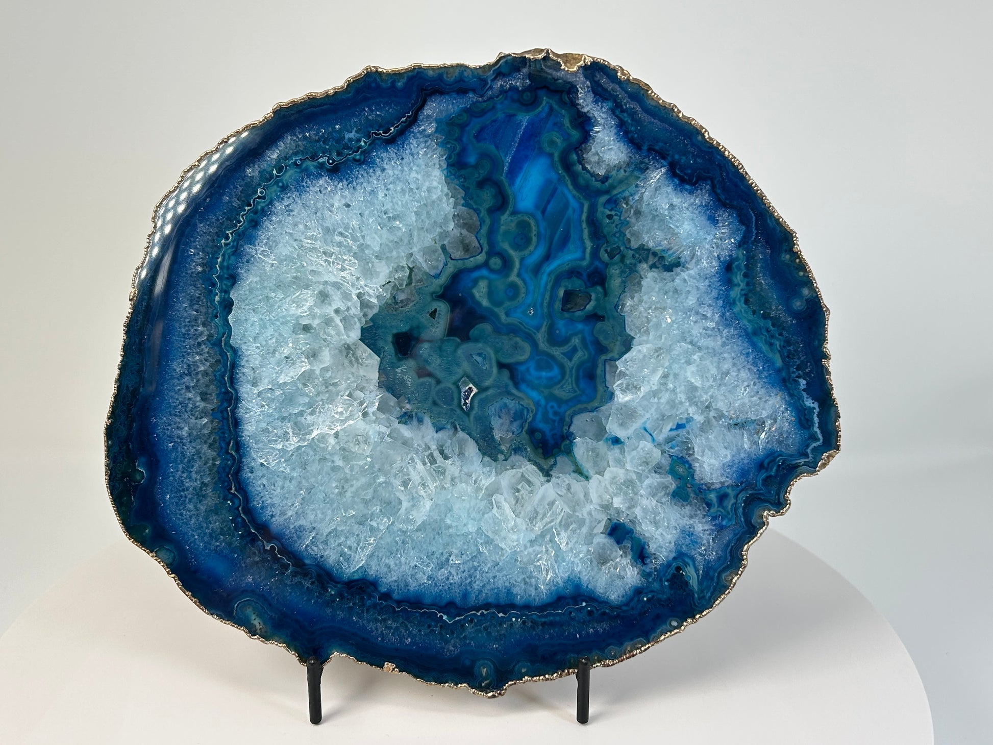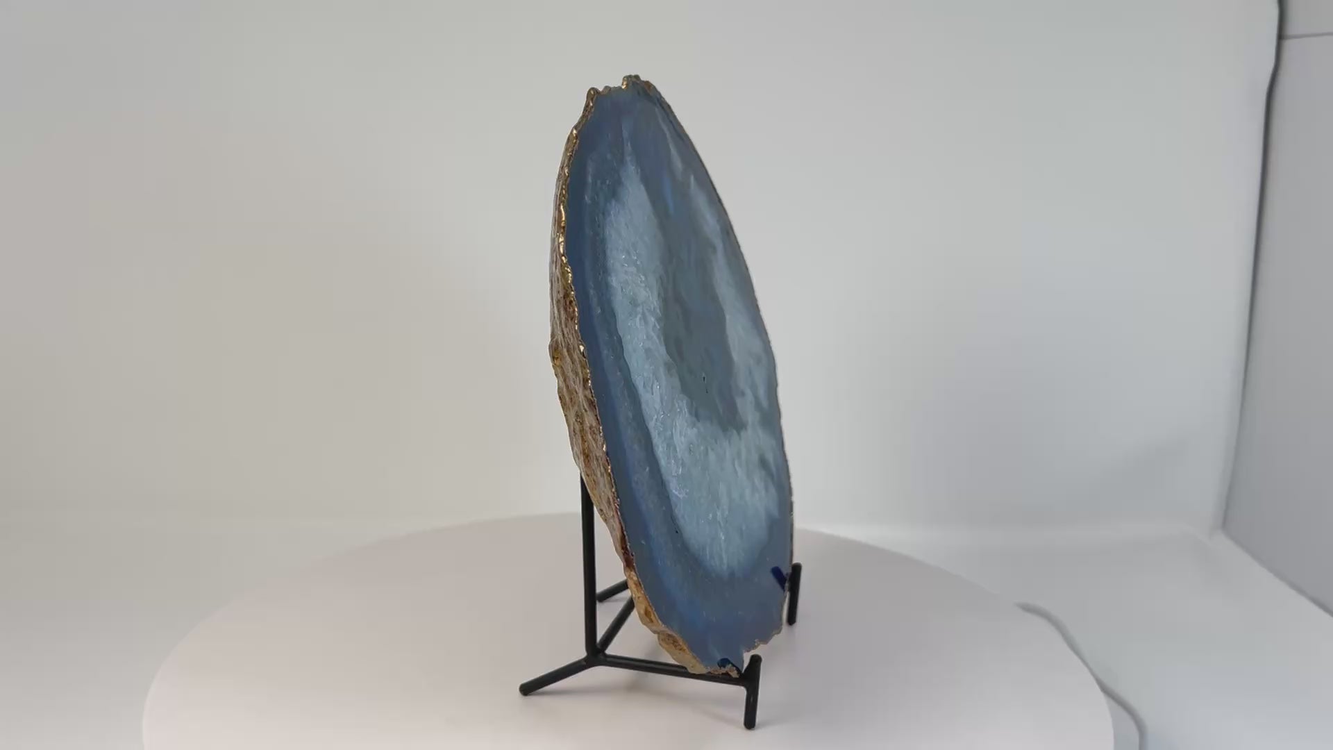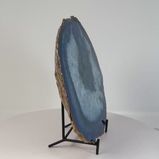 Over time, Blue Agate can help support emotional maturity, self-acceptance, and thoughtful decision-making. Displayed on its iron stand, this plate acts as an anchoring presence in shared spaces, encouraging harmony, focus, and a sense of quiet security. This stone supports creating calm, balanced environments where clarity, steadiness, and emotional ease can naturally unfold.