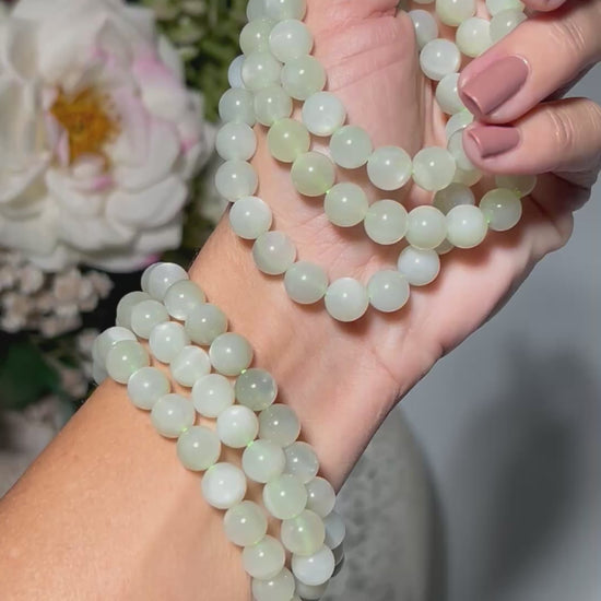 Worn as a bracelet, Green Moonstone offers continuous, gentle support throughout the day. Its energy is soothing yet empowering, helping you remain emotionally steady while staying open to growth, intuition, and possibility.