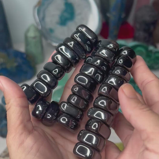 Receive one pound of magnetic hematite tumbles with a crystal info card and pouch. It comes with about 30 pieces in one pound lot.