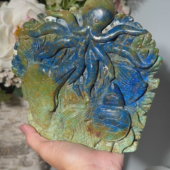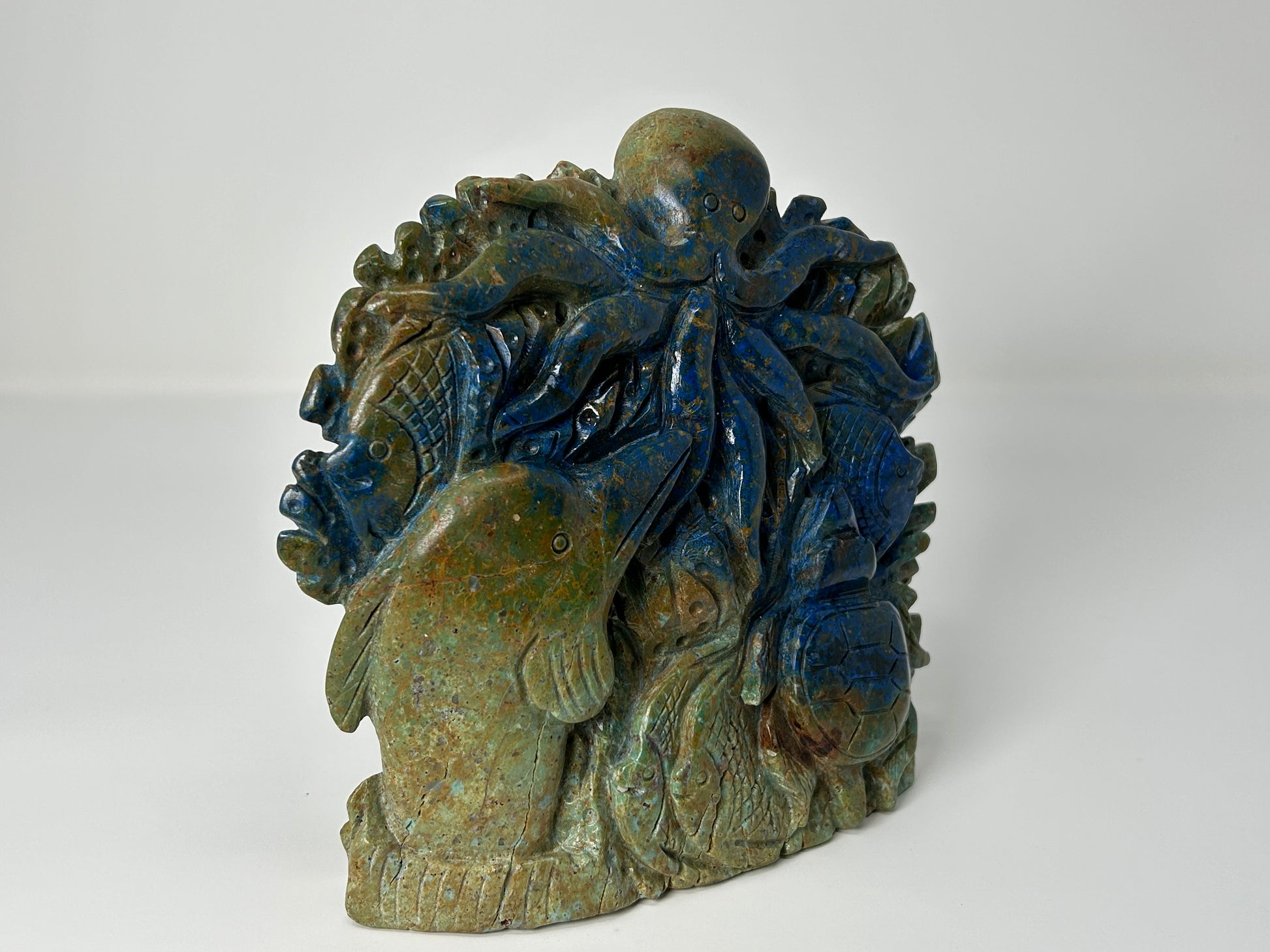 Phoenix Pine is a trade name for the blend of Azurite and Chrysocolla. Other dealers may site the material to contain Turquoise and Malachite. I don't see any evidence of the latter in our products.