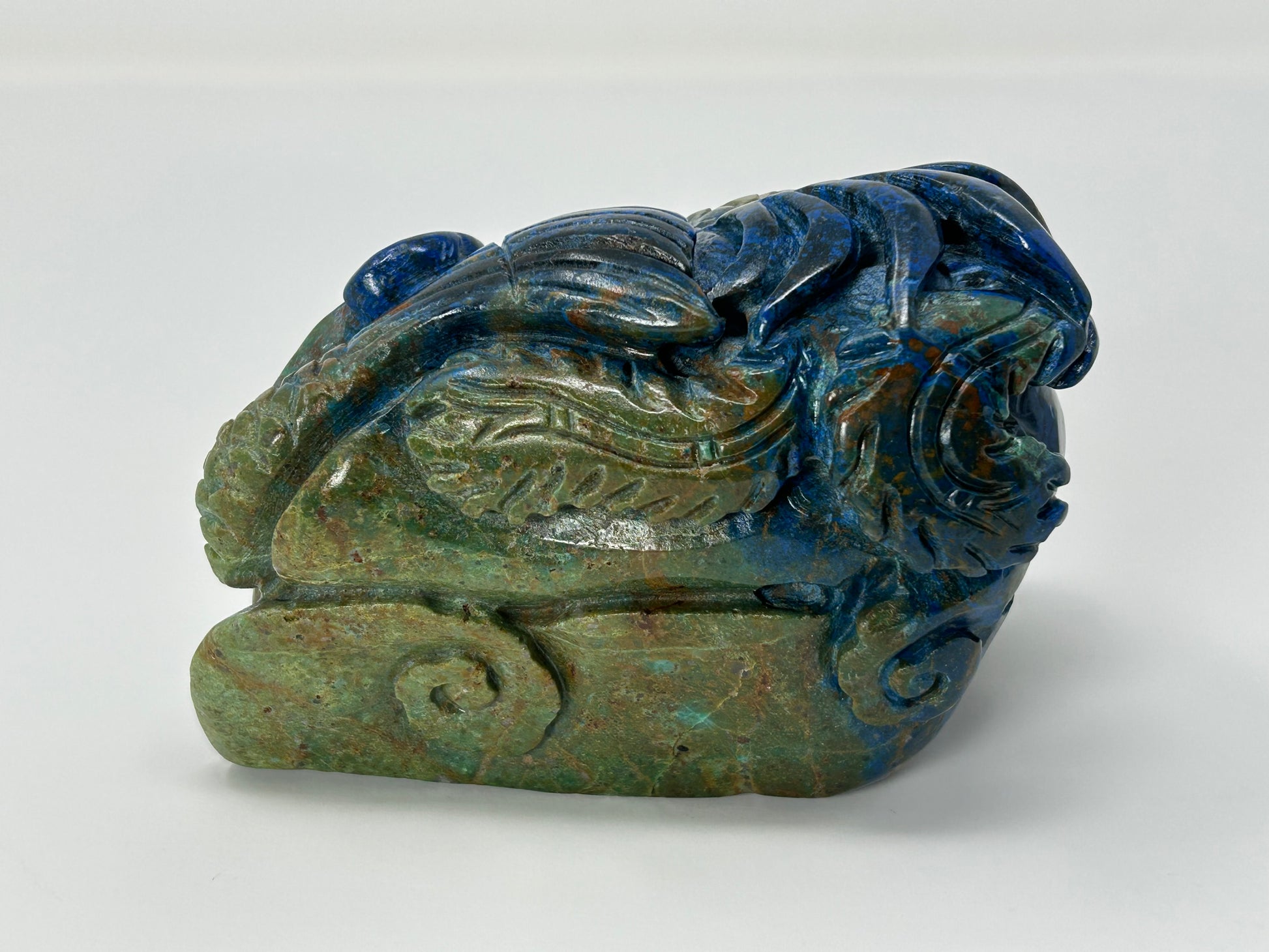 Phoenix Pine is a trade name for the blend of Azurite and Chrysocolla. Other dealers may site the material to contain Turquoise and Malachite. I don't see any evidence of the latter in our products.