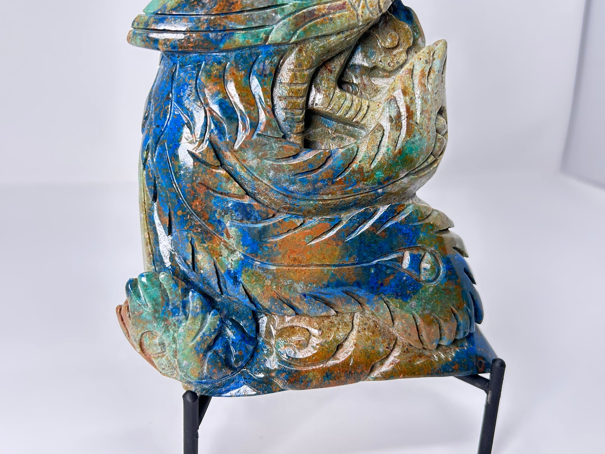 Phoenix Pine is a trade name for the blend of Azurite and Chrysocolla. Other dealers may site the material to contain Turquoise and Malachite. I don't see any evidence of the latter in our products.