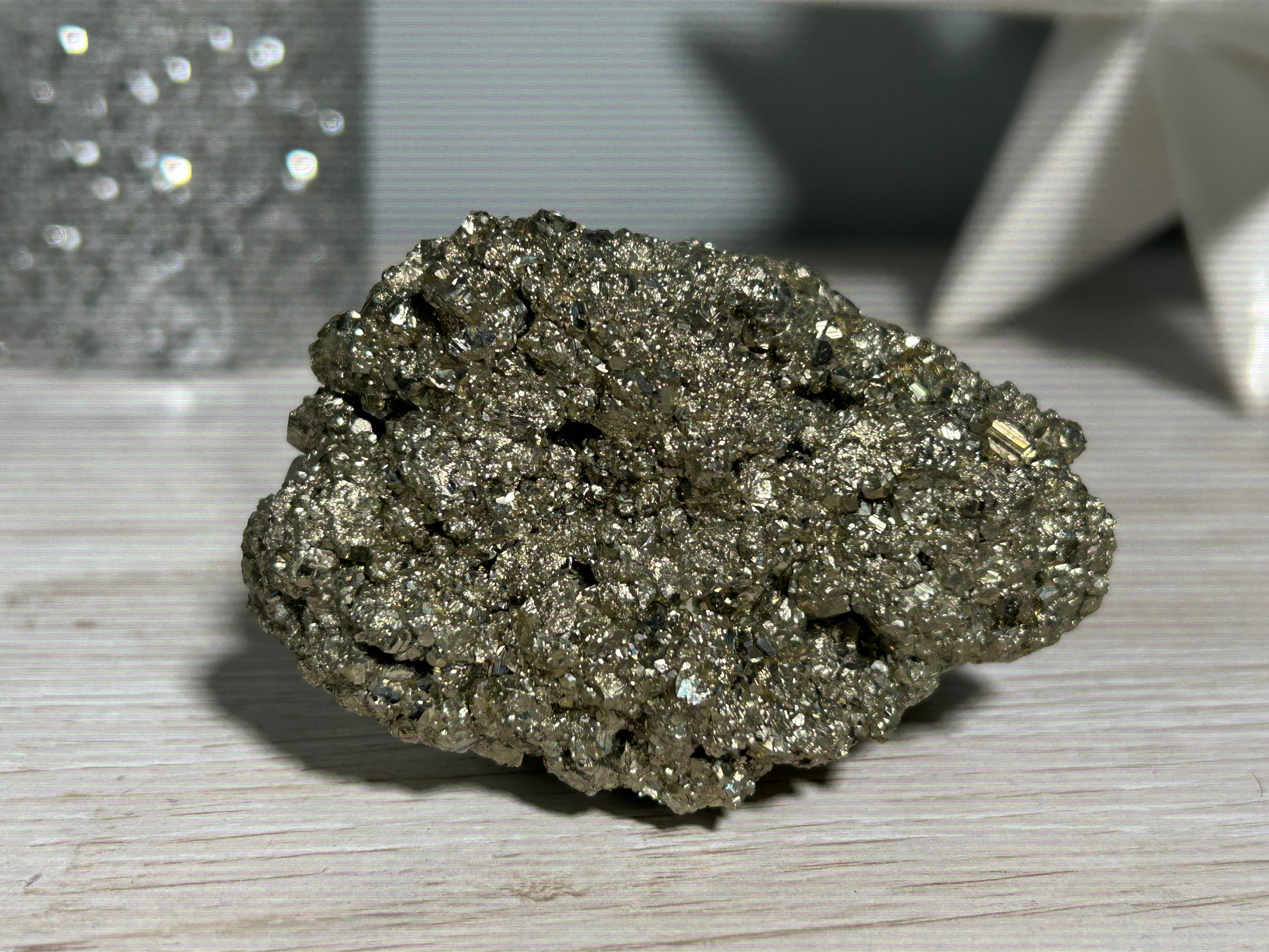 In cluster form, Pyrite radiates its energy outward, making it ideal for workspaces, desks, or areas where focus and productivity are needed. It’s often used to support goal-setting, manifestation, and grounded decision-making.