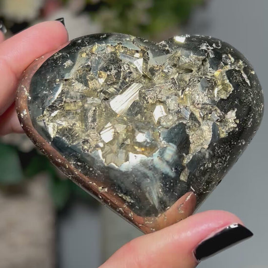 Pyrite is a bold, energizing stone that supports confidence, willpower, and purposeful action. Carved into a heart shape, its energy softens slightly — focusing not just on momentum and drive, but on self-worth, inner strength, and confidence rooted in self-respect.
