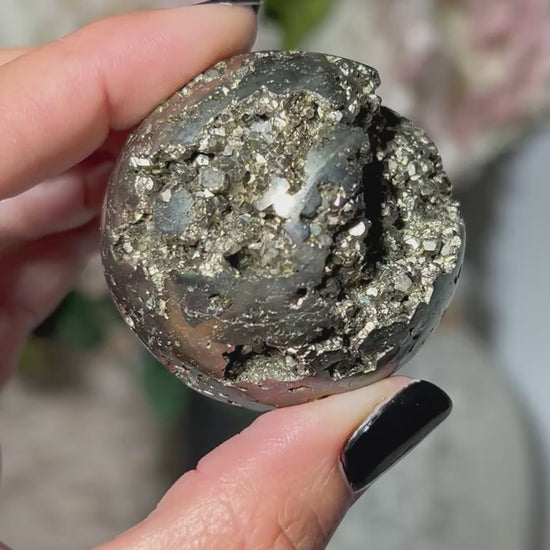 Pyrite is a bold, energizing stone known for supporting confidence, motivation, and purposeful action. In sphere form, its energy radiates evenly in all directions — creating a sense of balance, stability, and steady momentum rather than sharp or forceful drive.