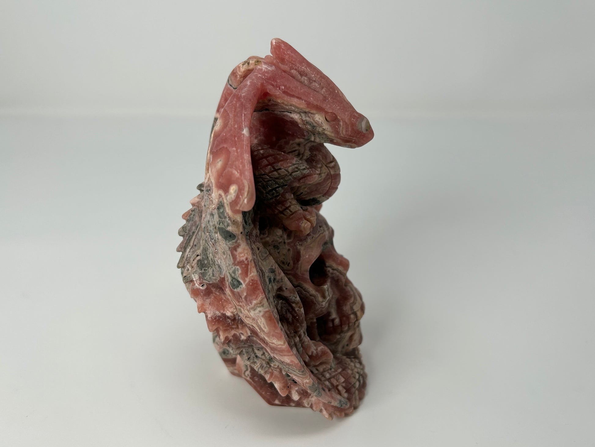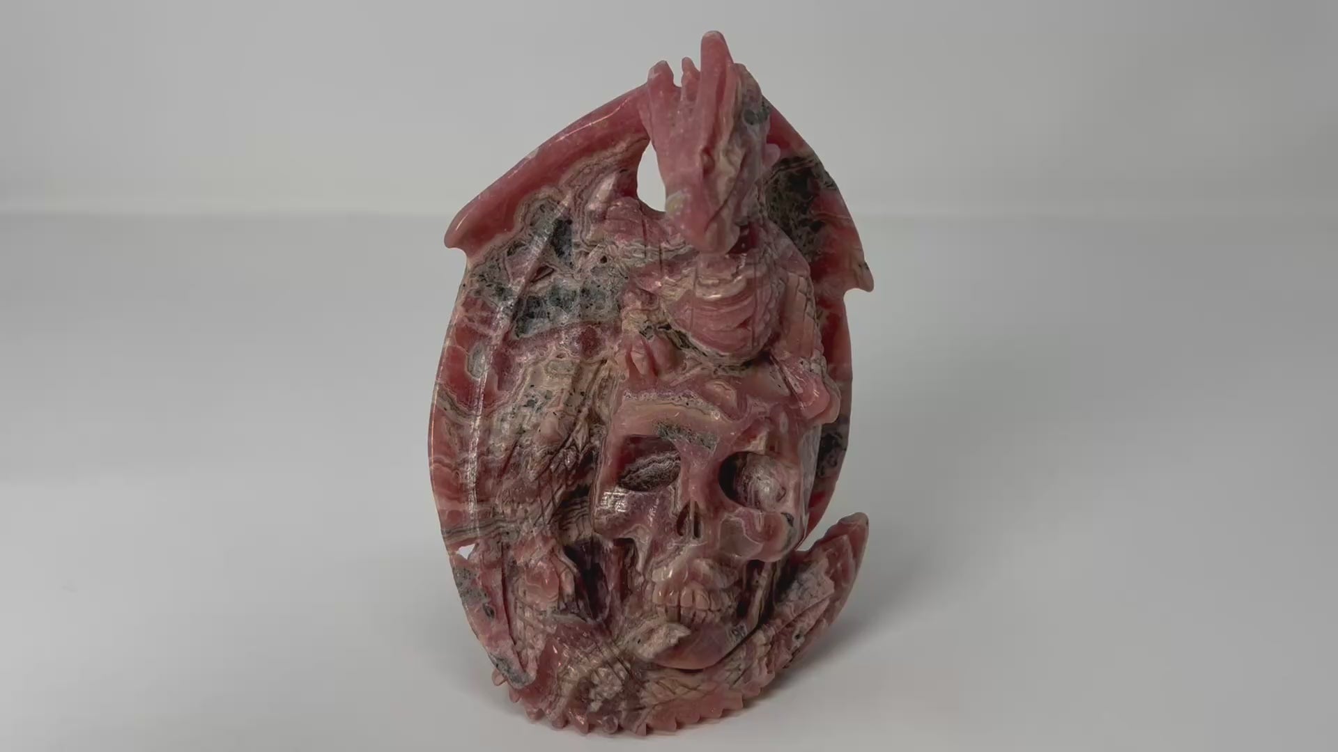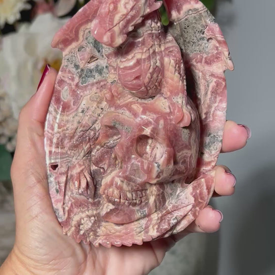 🌸 Rhodochrosite Skull with Dragon — Stone of Deep Healing, Courage & Heart Restoration