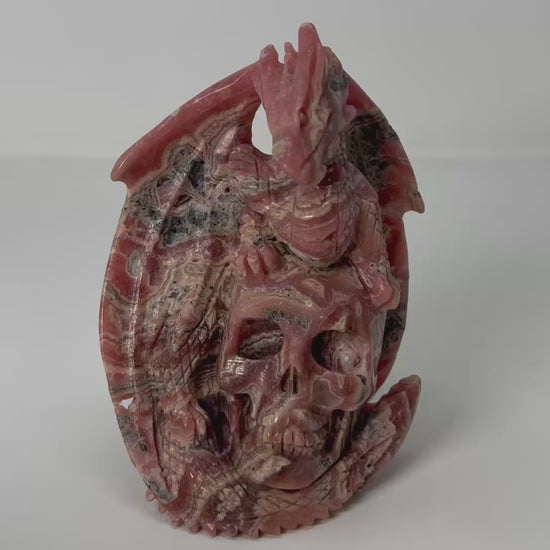 This Rhodochrosite Skull with Dragon