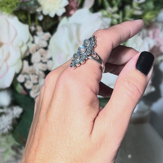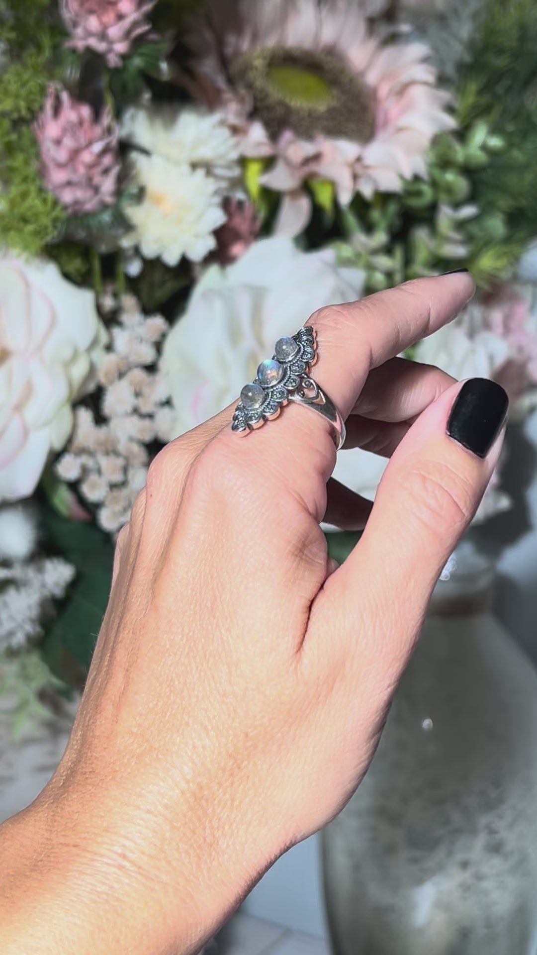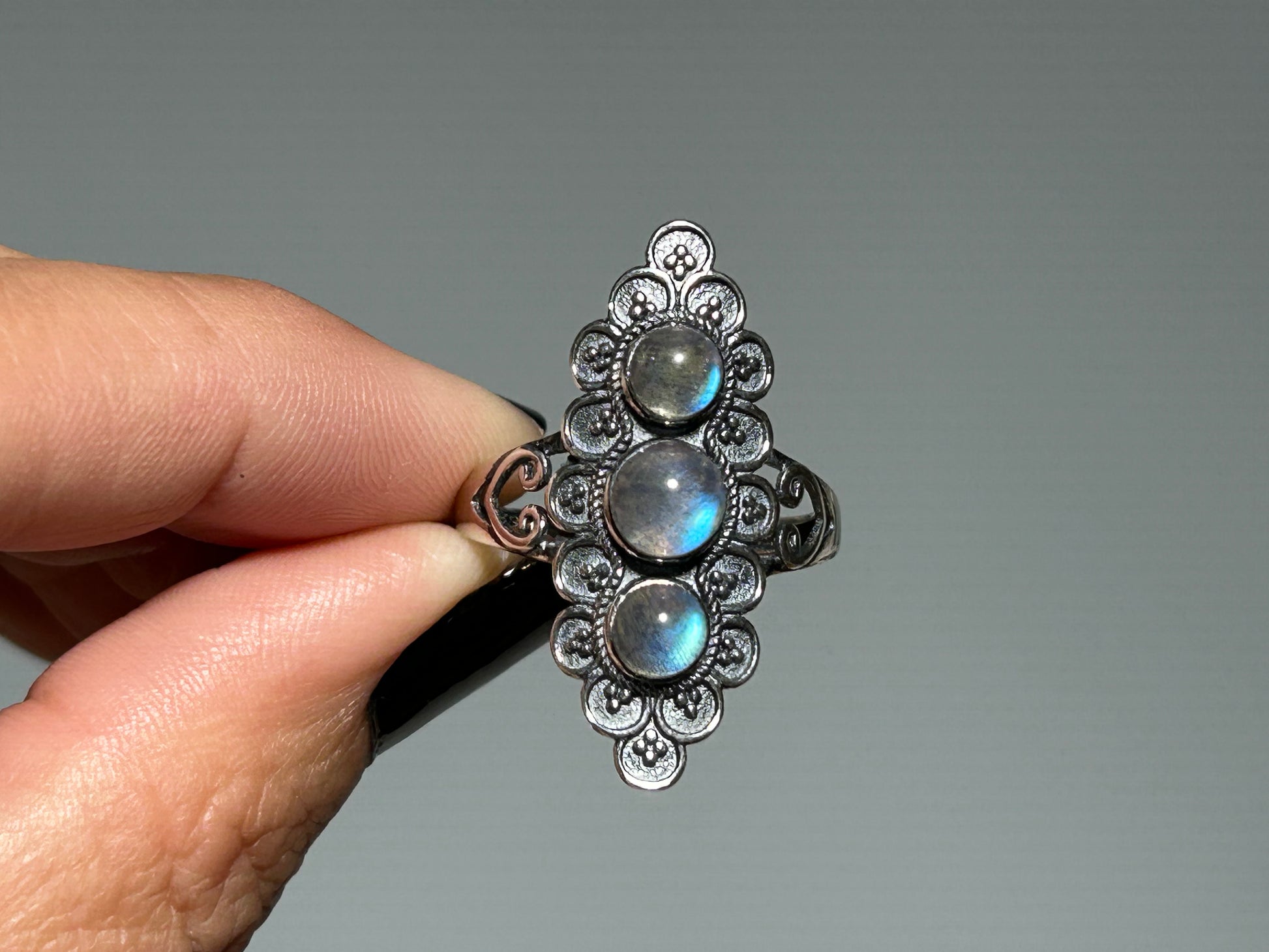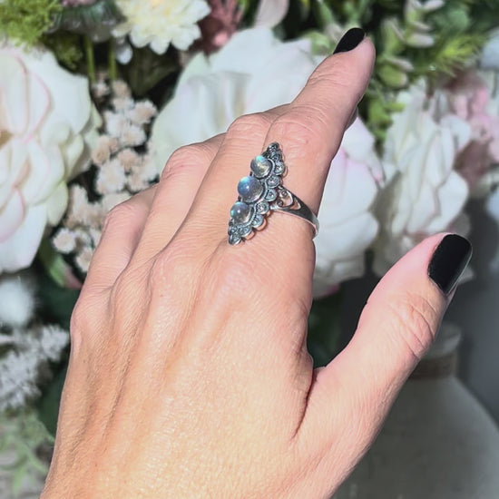 4.6-5.8mm Labradorite Cabochon on .925 Sterling Silver ring